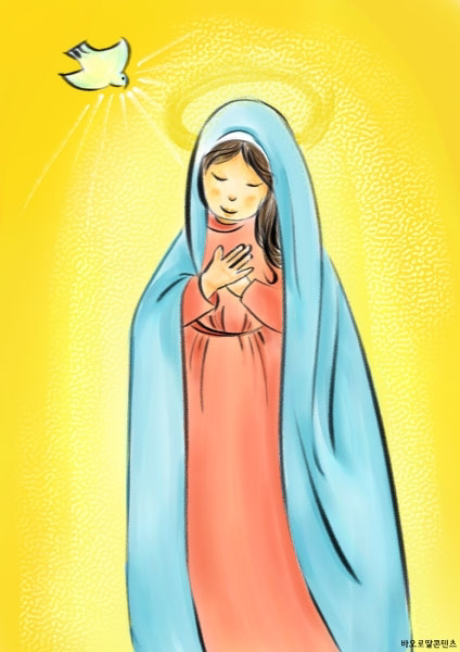 4단 예수님께서 마리아를 하늘에 불러올리심을 묵상합시다.